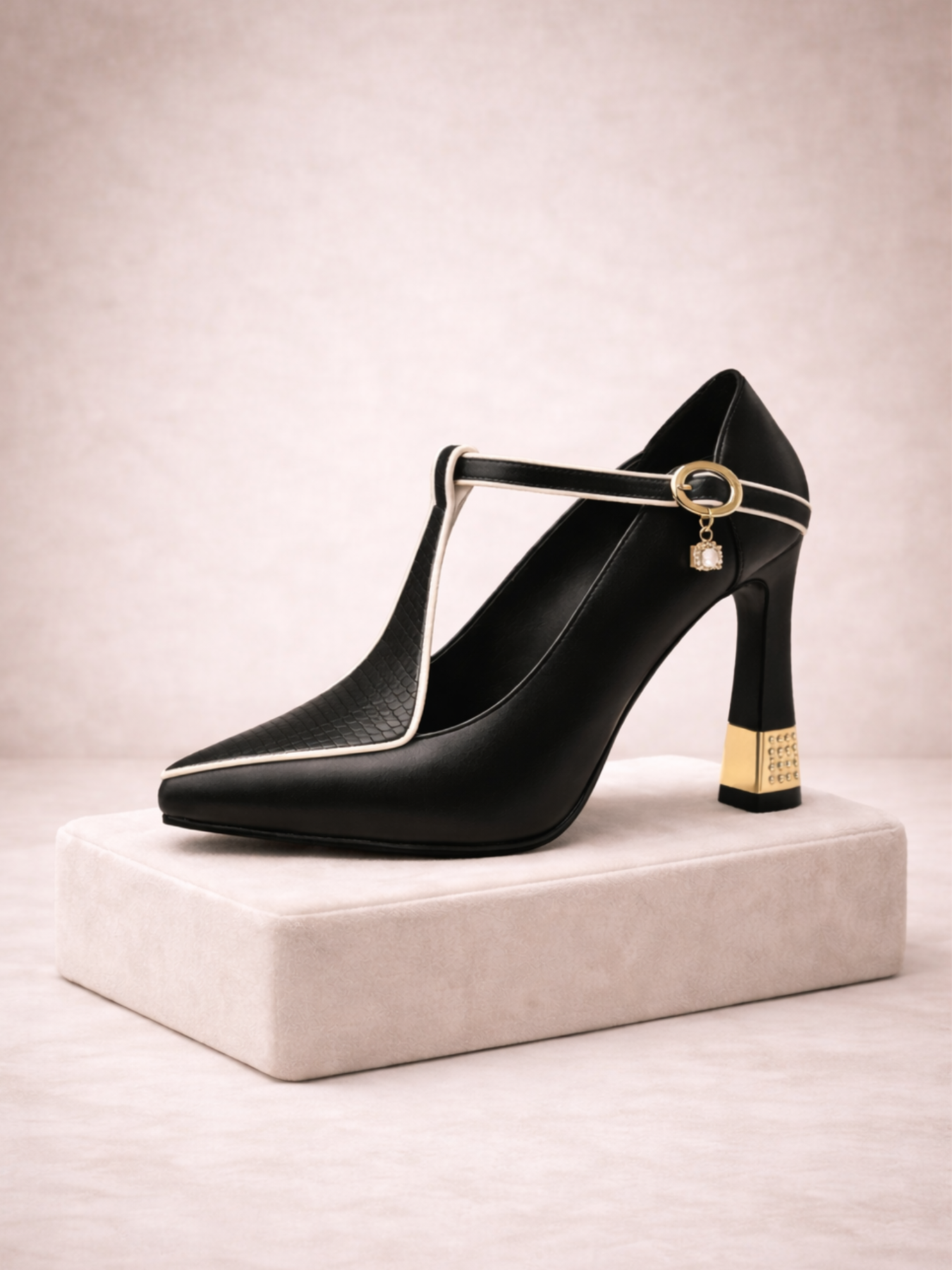 Elevate your style with our stunning Ailsling Tara Heels, designed for the modern woman who values both sophistication and comfort. Crafted from premium-quality leather, these heels feature a refined T-strap design with a decorative charm, a sturdy square heel adorned with sparkling accents, and an elegant pointed toe. Perfect for formal events or a chic everyday look, the Ailsling Tara Heels combine timeless elegance with a contemporary edge, ensuring you stand out with every step.